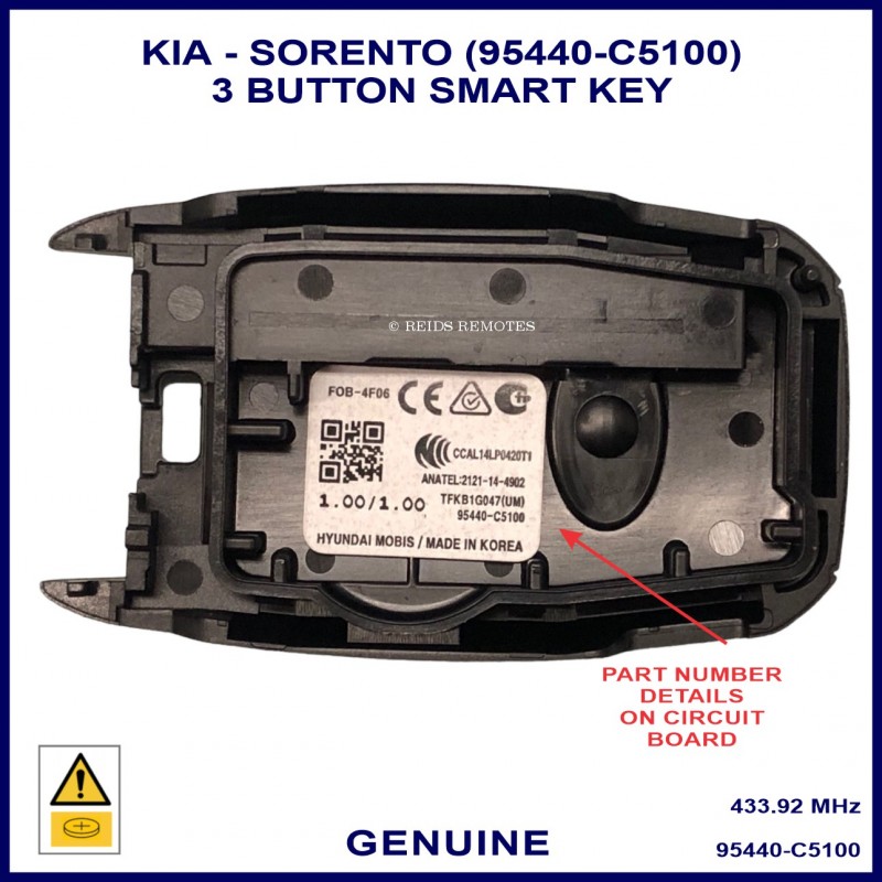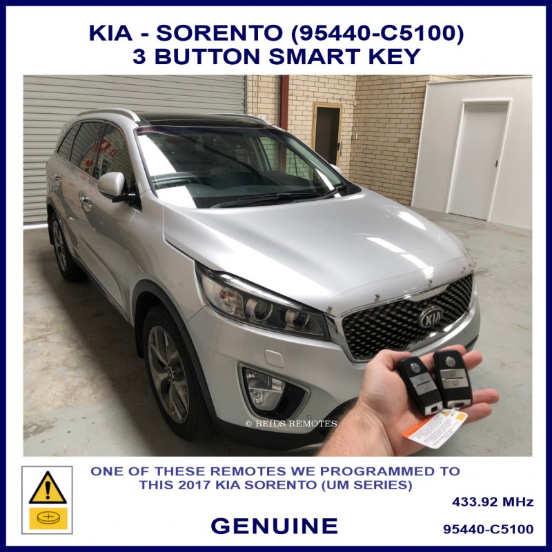 Kia Sorento UM series genuine 95440-C5100 3 button genuine smart proximity remote key. Please check the part number or supply us with the VIN (Vehicle identification number) for your vehicle to ensure this is suitible.