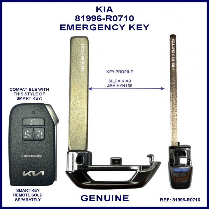 Kia genuine emergency key blade to match part number 81996-R0710 for use in smart proximity remotes 95440-R0450 for Kia Carnival models.