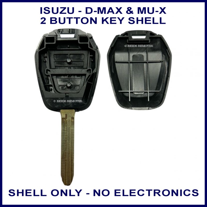 Isuzu D-Max and MU-X 2nd generation replacement 2 button all black remote key shell.