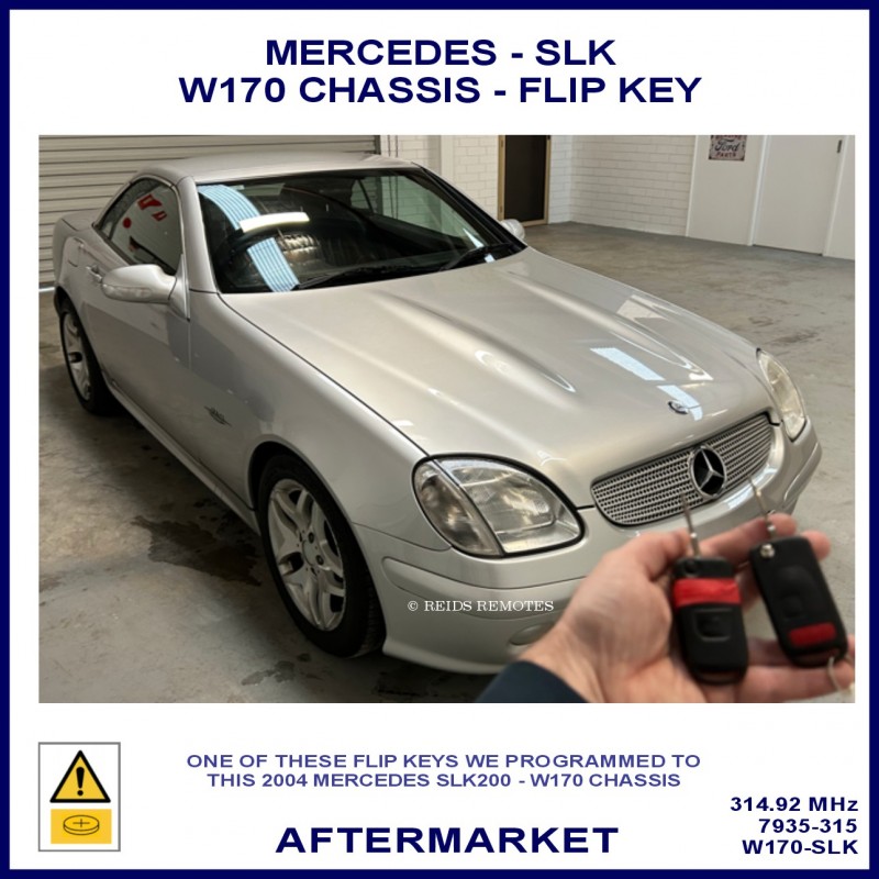 In late 2017 Mercedes stopped making the replacement flip keys for these older model Mercedes SLK vehicles on the W170 chassis as well as a bunch of other flip keys. This series is often referred to as the R170 SLK but as you will see from the photos the VIN in Australia started with a W and so is referred to as the W170 chassis.