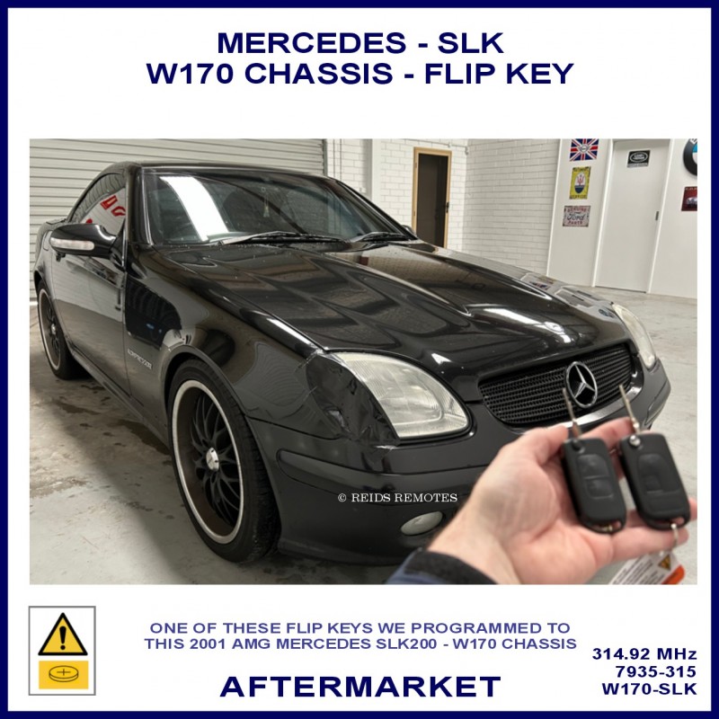 Mercedes SLK W170 chassis 1996 - 2004 models compatible remote flip key for models with PCF7935 transponder & 315 MHz remote.