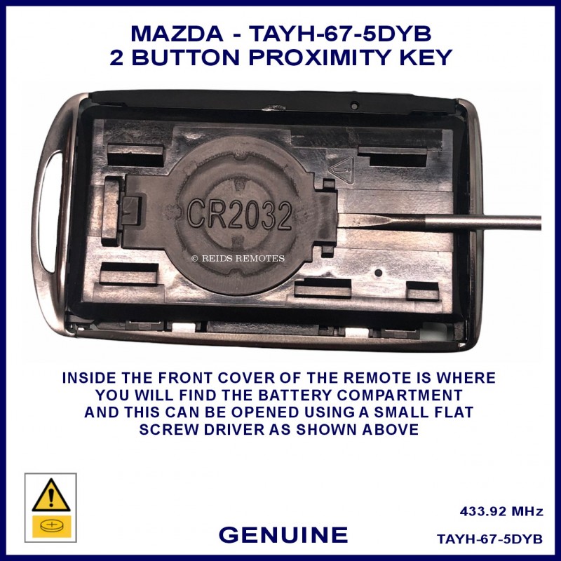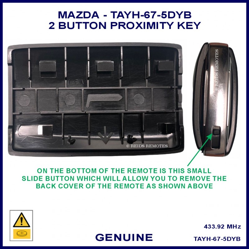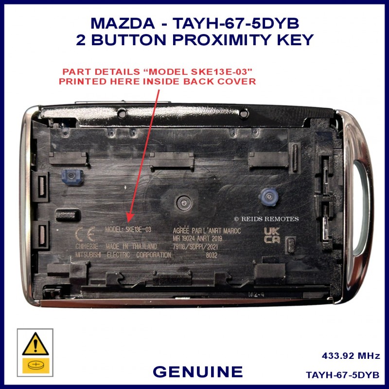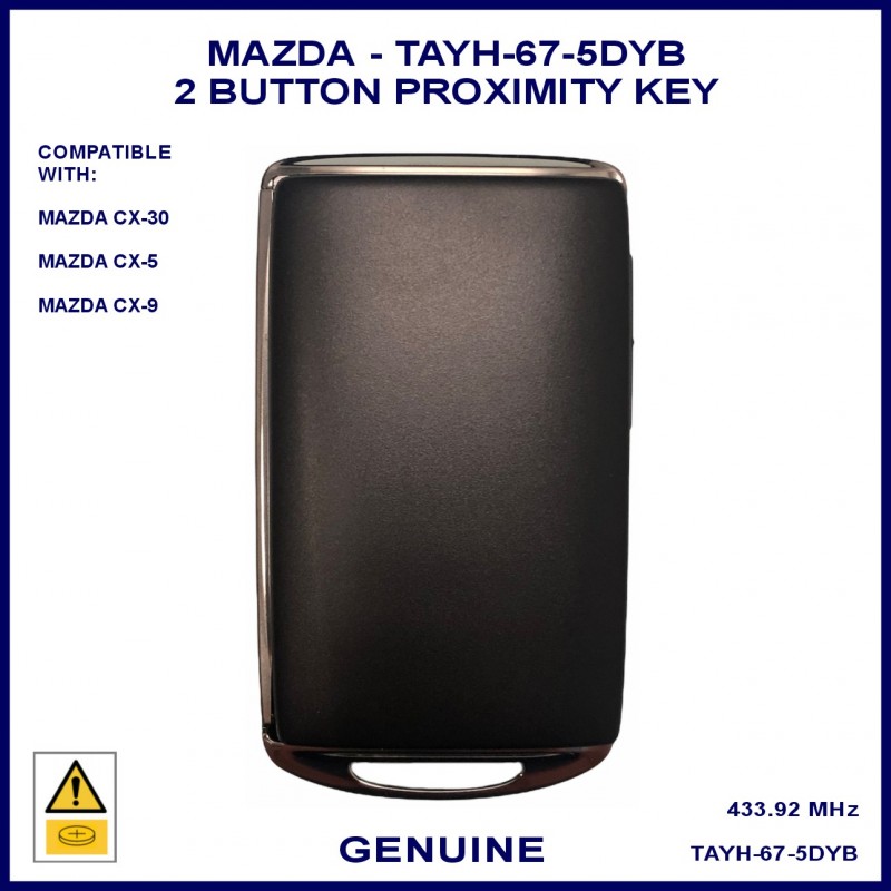 This genuine Mazda 2 button proximity key suits a number of Mazda models with key part number TAYH-67-5-DYB.