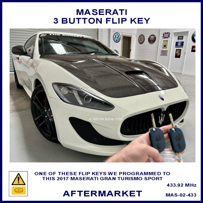 This after-market Maserati 3 button blue flip key can be used with the following vehicles: