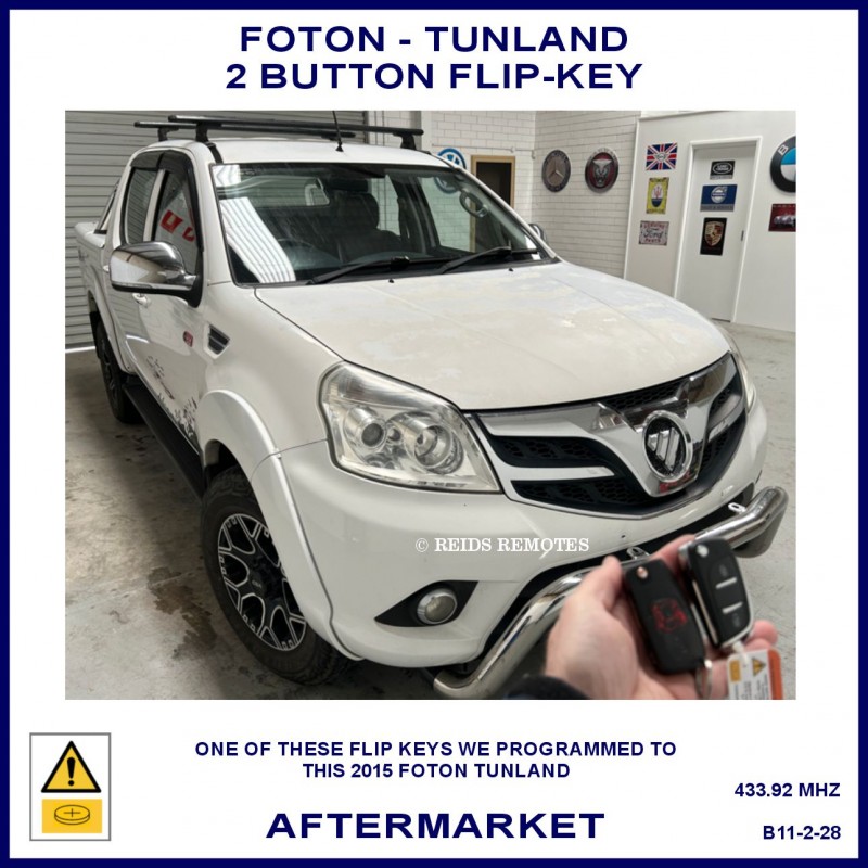 This aftermarket 2 button flip key can replace the Foton Tunland flip key used from 2011-2019 onward which use the same style remote flip key as shown on the left of the 1st image.