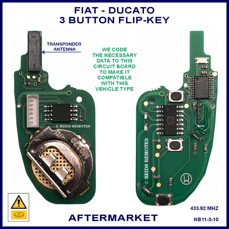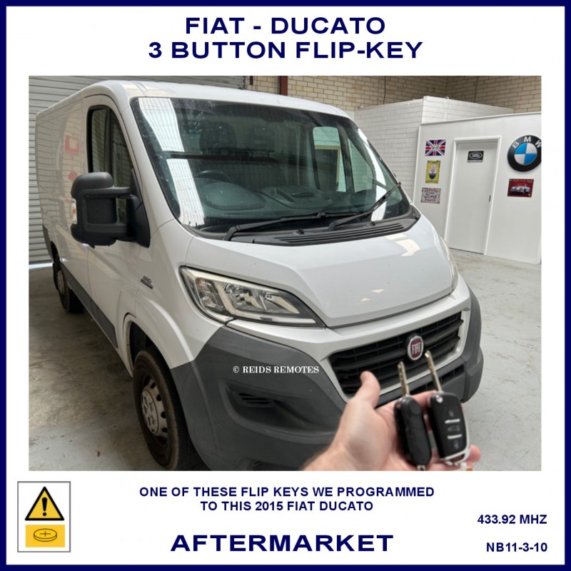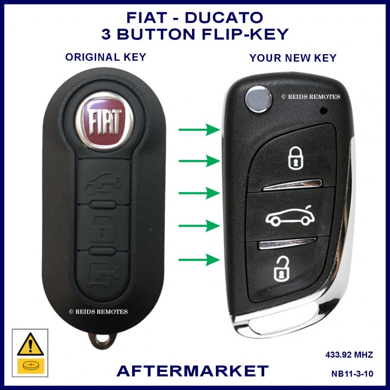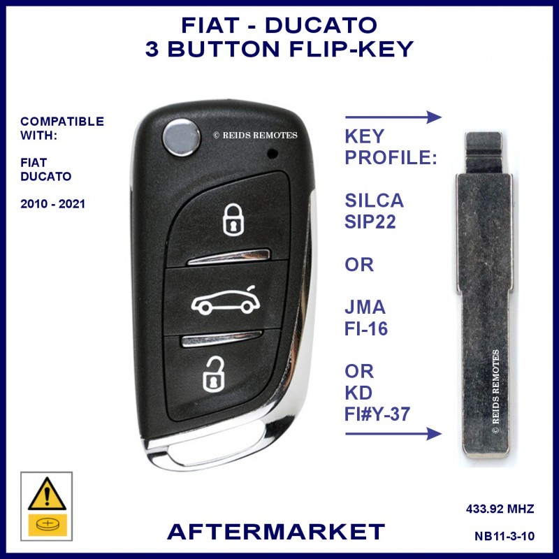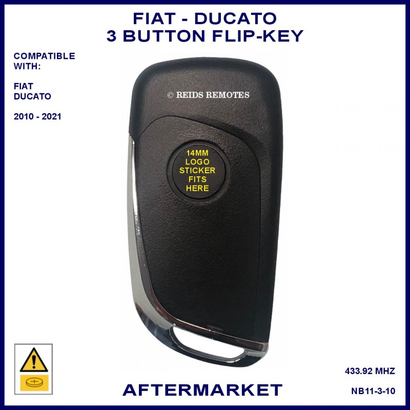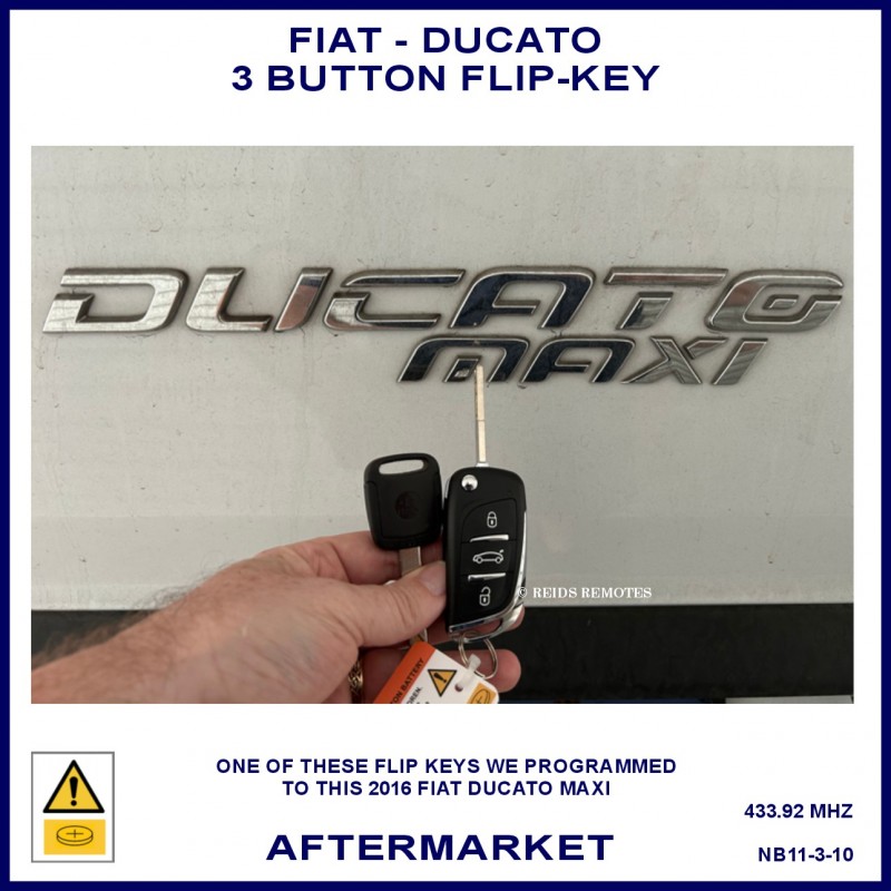 Fiat Ducato models from 2010 onward compatible aftermarket 3 button flip key which can be used to replace the 3 button black plastic original remote flip keys.