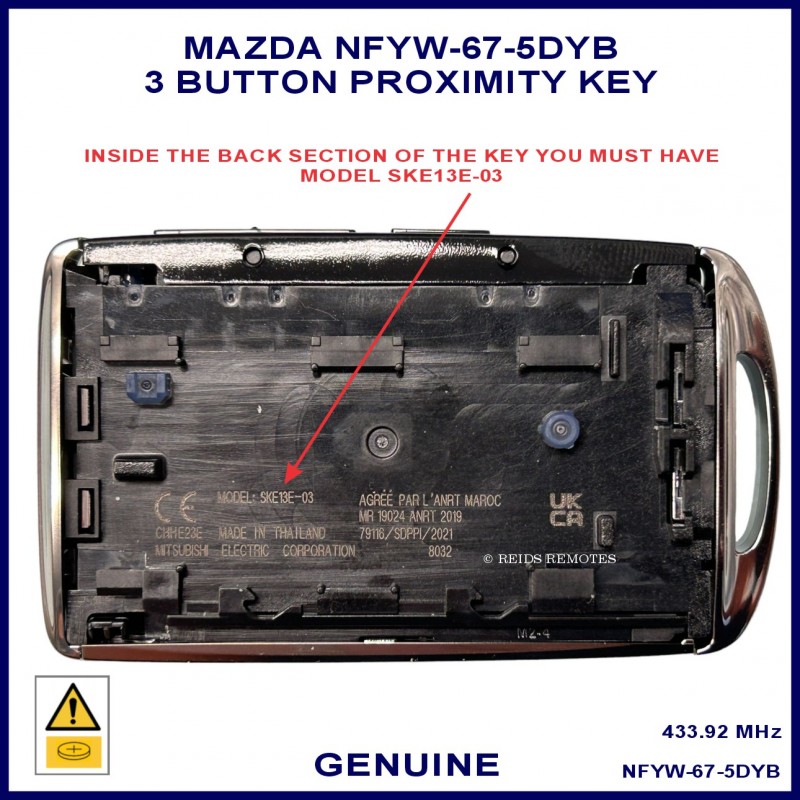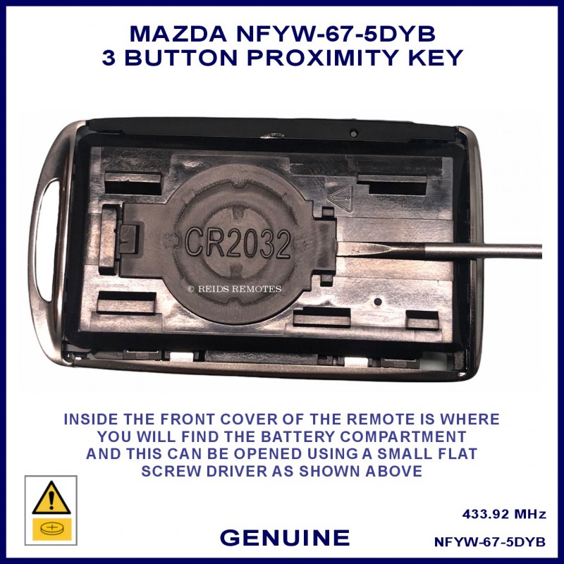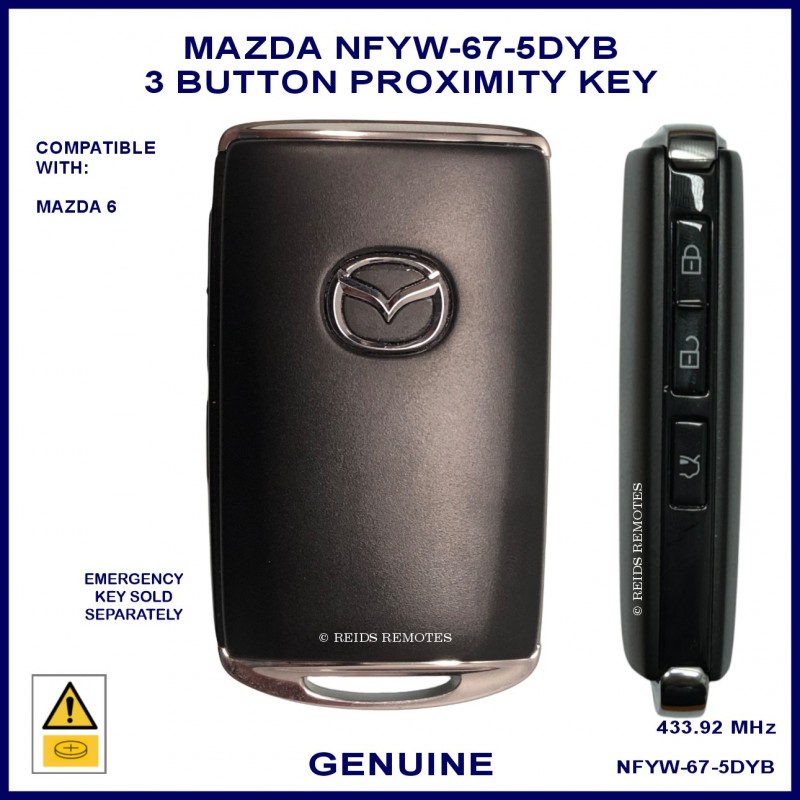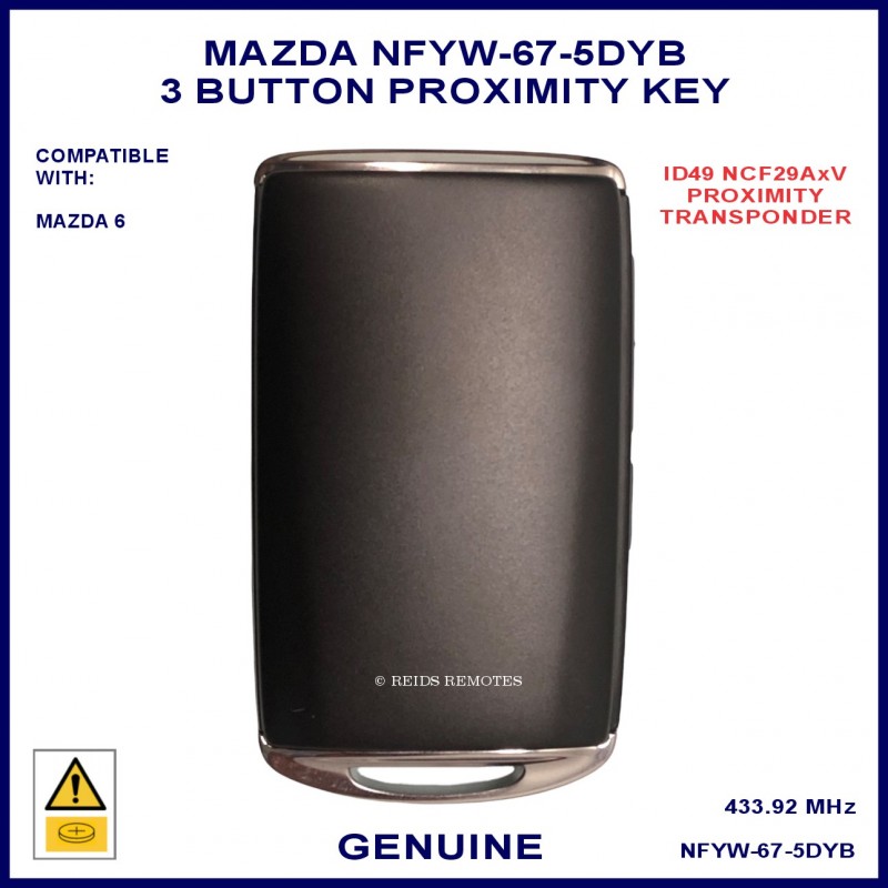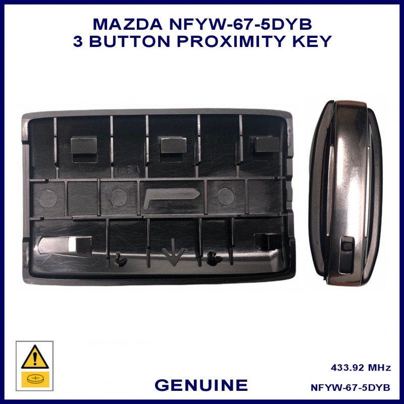 This genuine Mazda 3 button proximity key suits a number of Mazda models with key part number NFYW-67-5-DYB.