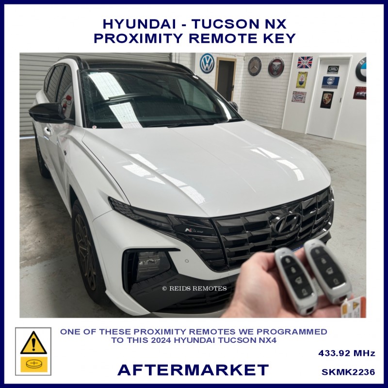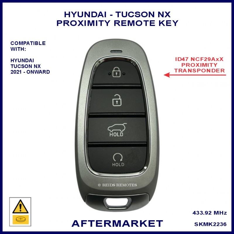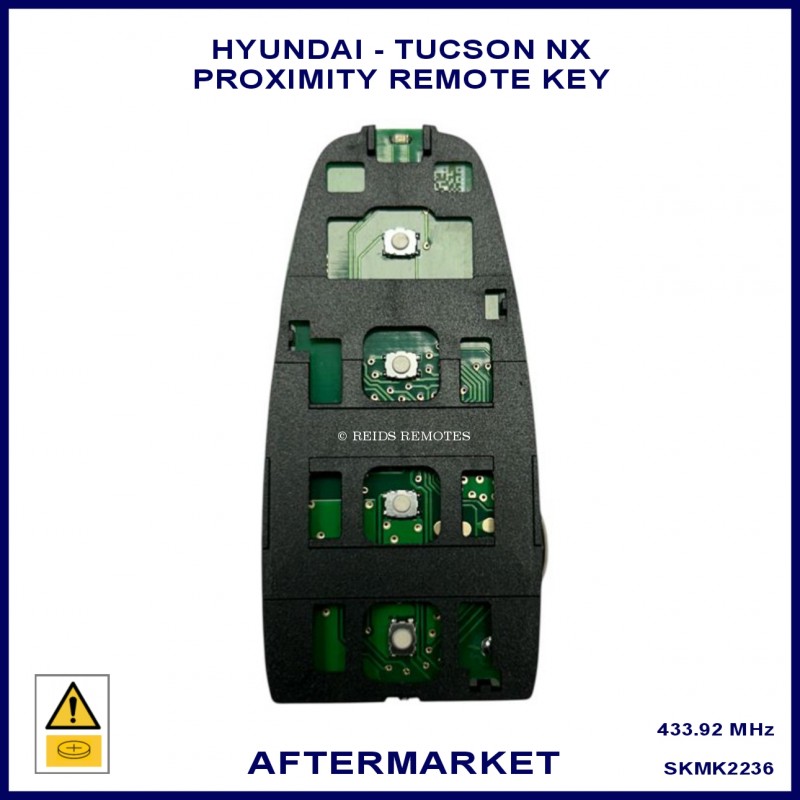This aftermarket Hyundai 4 button proximity remote key is suitable for Hyundai Tucson models manufactured after 2021.