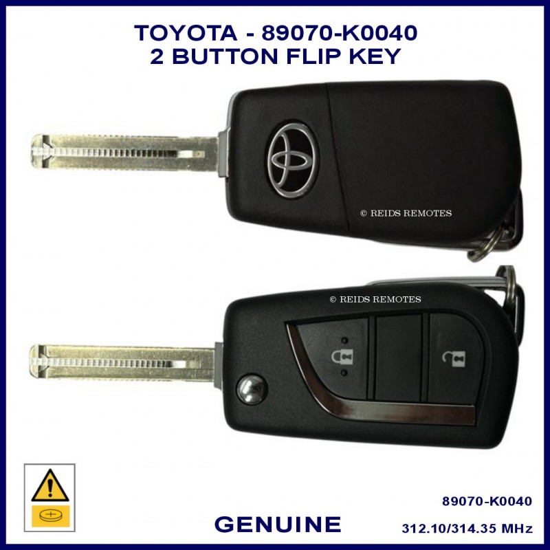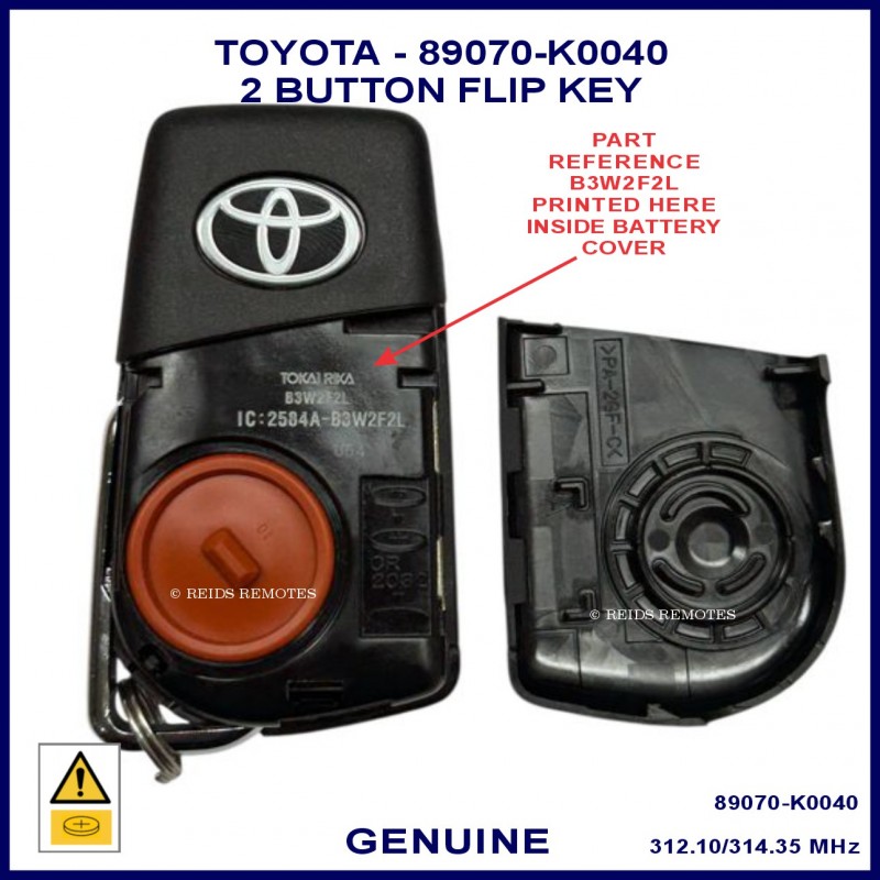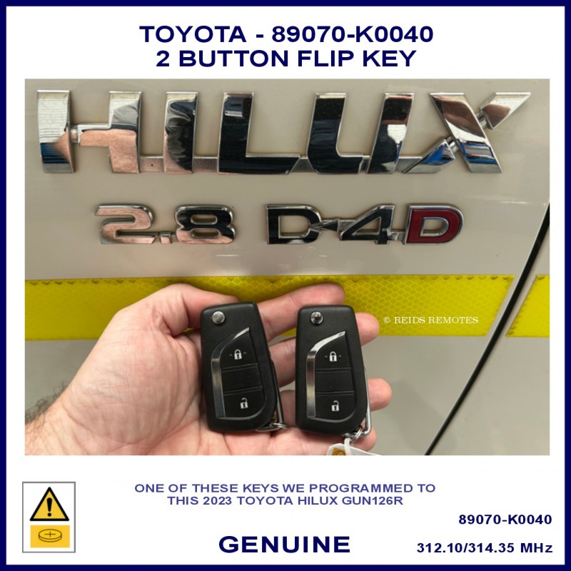 This genuine 2 button flip key can be used with Toyota Hilux GUN126R & Yaris MXPA10 / MXPH10 models which from 2020 onward where the remote frequency switches between 312.10 & 314.35 MHz.