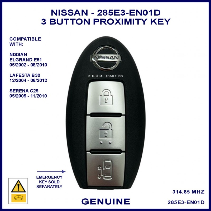This genuine Nissan 3 button smart proximity remote key can be used with a number of Nissan Japanese import models as listed below including the C25 Serena & E51 Elgrand.