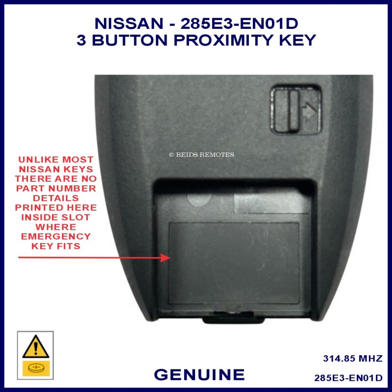You can remove the emergency key by pushing the release across on the back of the key and sliding out the emergency key. Normally a Nissan proximity remote would have part details in this spot but this particular key does not have any details printed there.