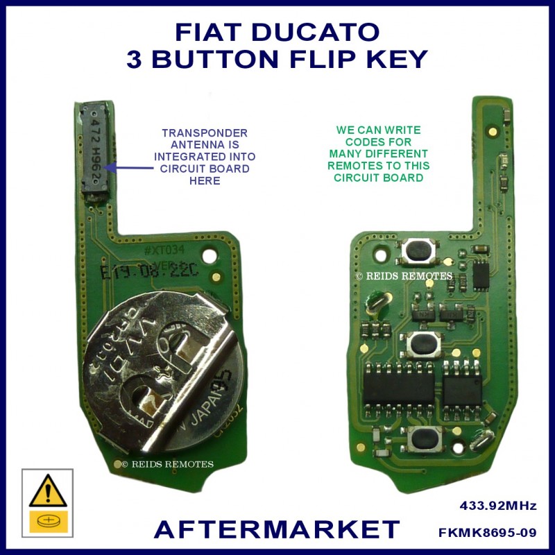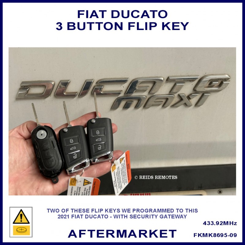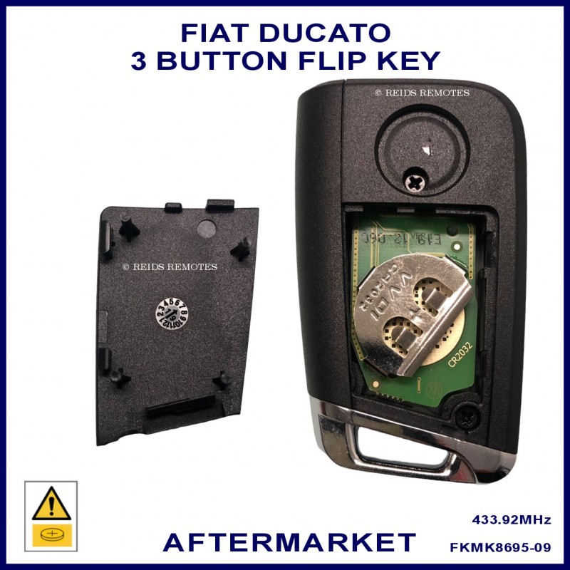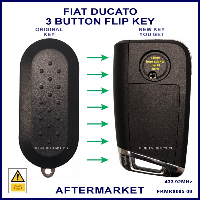 Fiat Ducato models from 2010 onward compatible aftermarket 3 button flip key which can be used to replace the 3 button black plastic original remote flip keys.